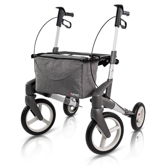 Helt nytt for TOPROs utendørs rullator er det ergonomiske håndtaket (TOPRO Ergo Grip) som gir fleksibelt grep og komfortable armlener mens du sitter. Det sørger også for riktig gangstilling og trygg oppreising fra sittende stilling. Sammen med de myke dekkene gir det dobbel støtdempende effekt for stabil kjørekomfort.
